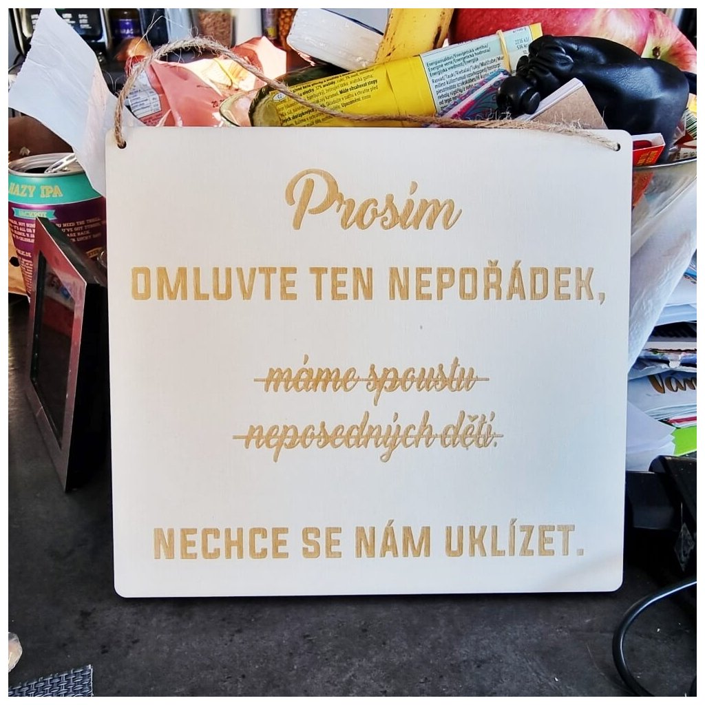 Originální dřevěná cedulka z topolové překližky v oblíbené přírodní barvě, která zaručeně pobaví :)