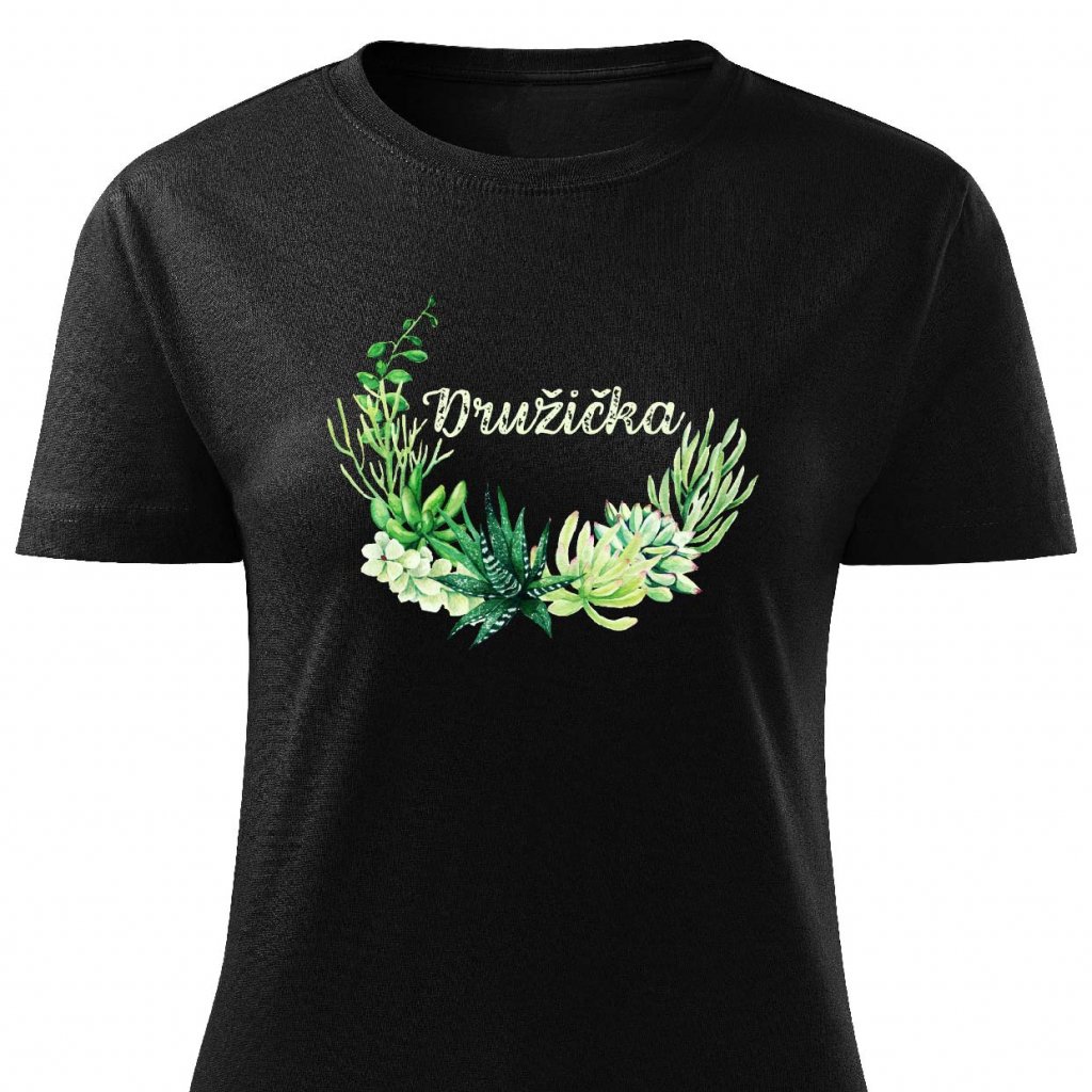 Dámské tričko Družička - květiny zelené