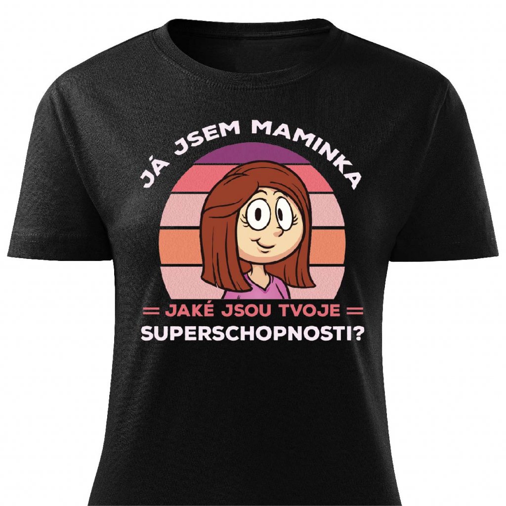Dámské tričko Já jsem maminka (hnědovláska). Jaká je tvoje superschopnost?