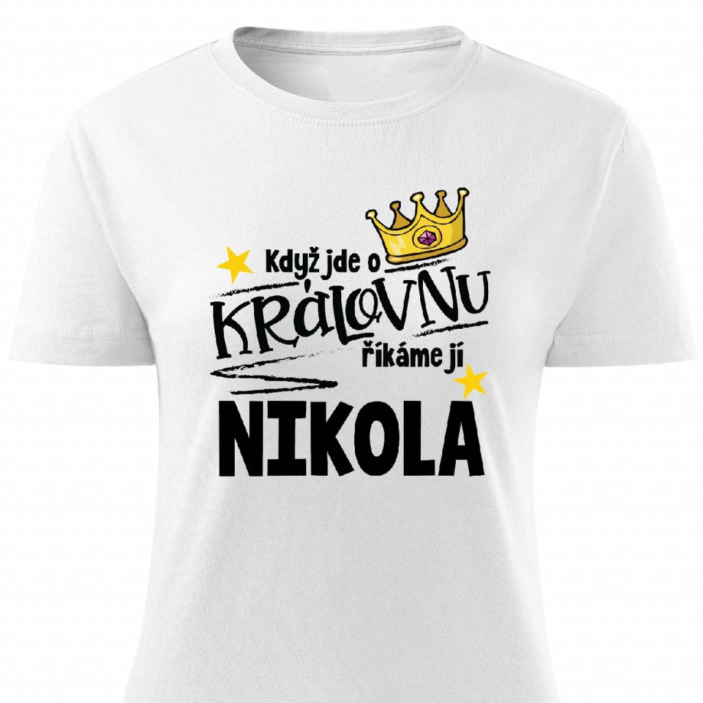 Tričko s potiskem Když jde o královnu, říkáme jí Nikola