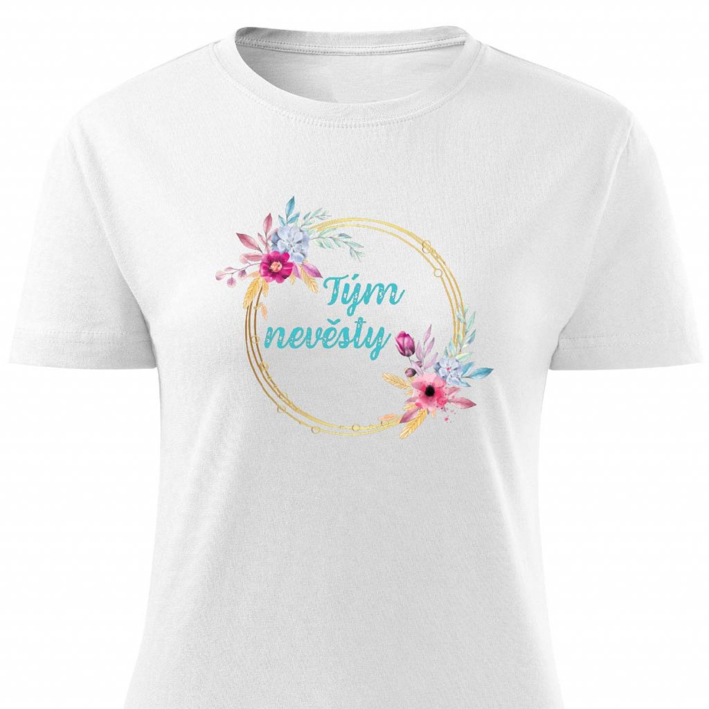 Dámské tričko Tým nevěsty - věneček růžovomodrý