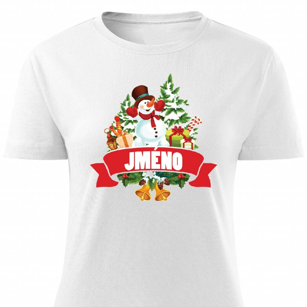 Dámské tričko - Vánoční sněhulák se jménem na přání