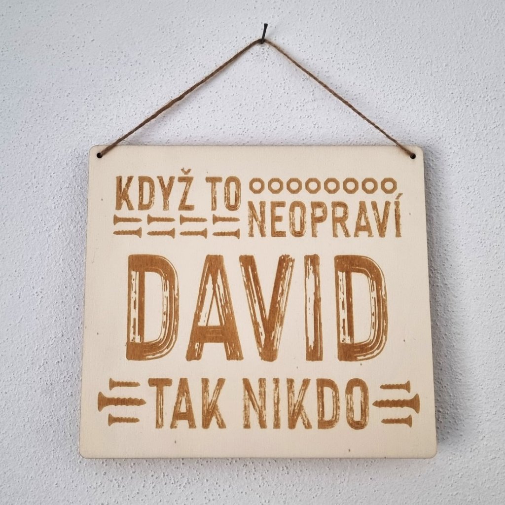 Dřevěná cedulka - Když to neopraví David, tak nikdo