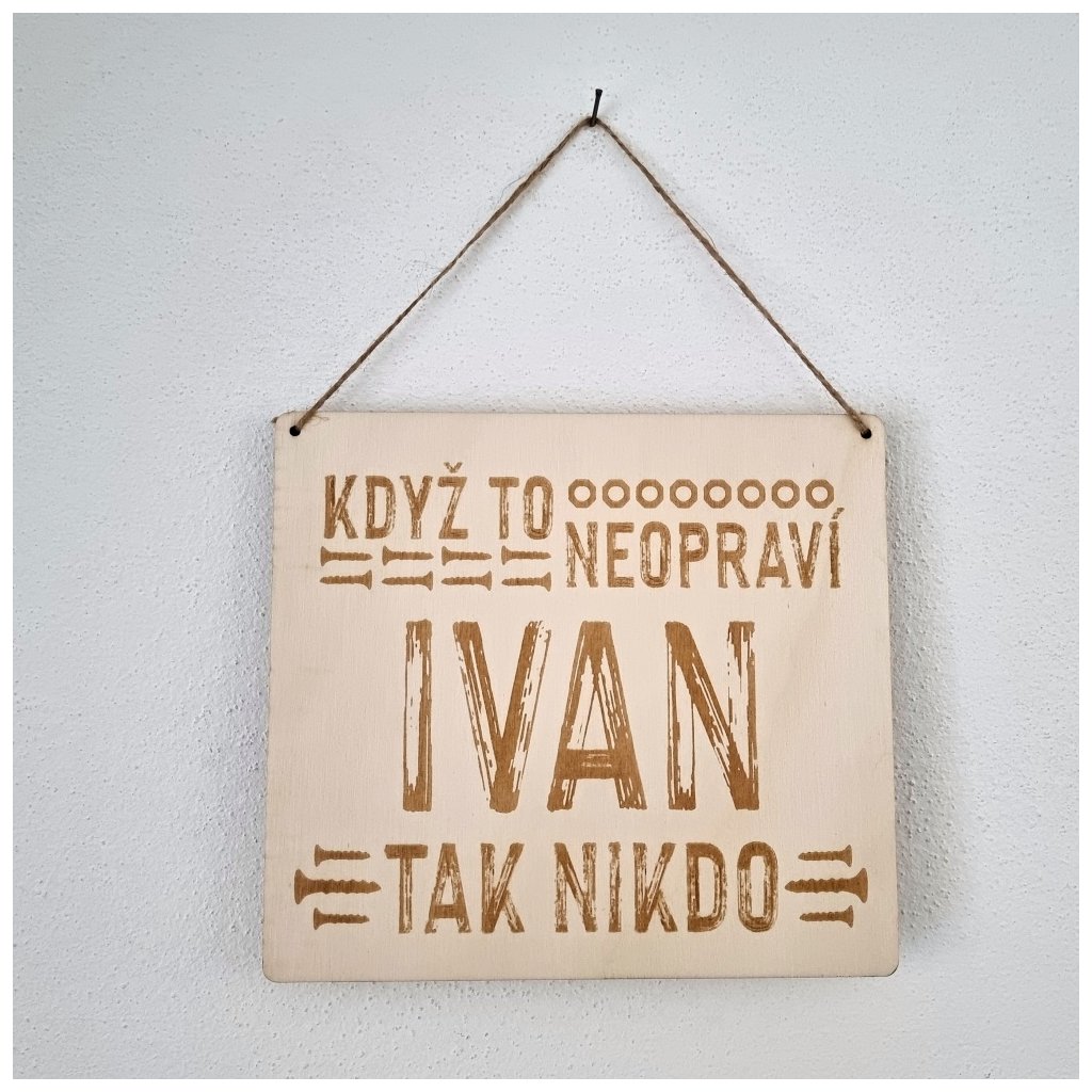 Dřevěná cedulka - Když to neopraví Ivan, tak nikdo