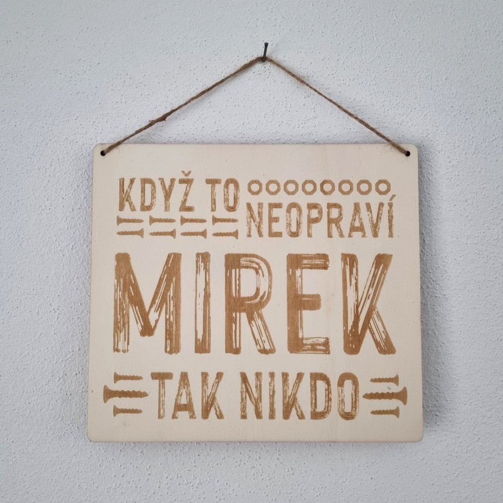 Dřevěná cedulka - Když to neopraví Mirek, tak nikdo