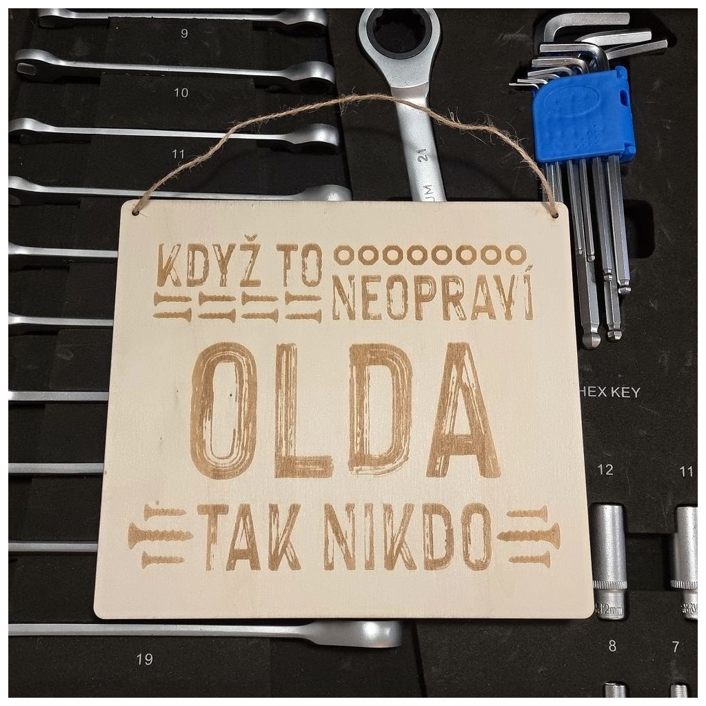 Dřevěná cedulka - Když to neopraví Olda, tak nikdo