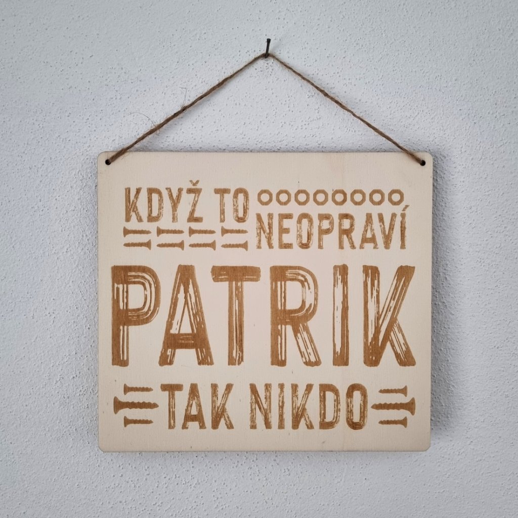Dřevěná cedulka - Když to neopraví Patrik, tak nikdo