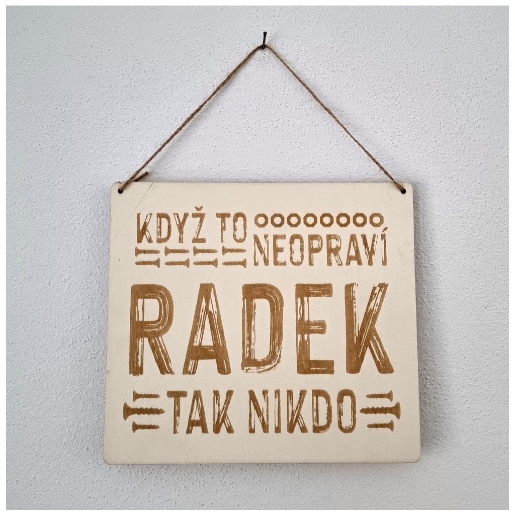 Dřevěná cedulka - Když to neopraví Radek, tak nikdo