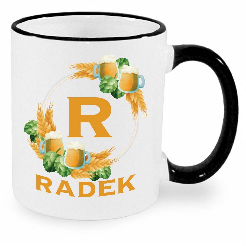 Hrnek - Pivní věnec s monogramem a jménem Radek