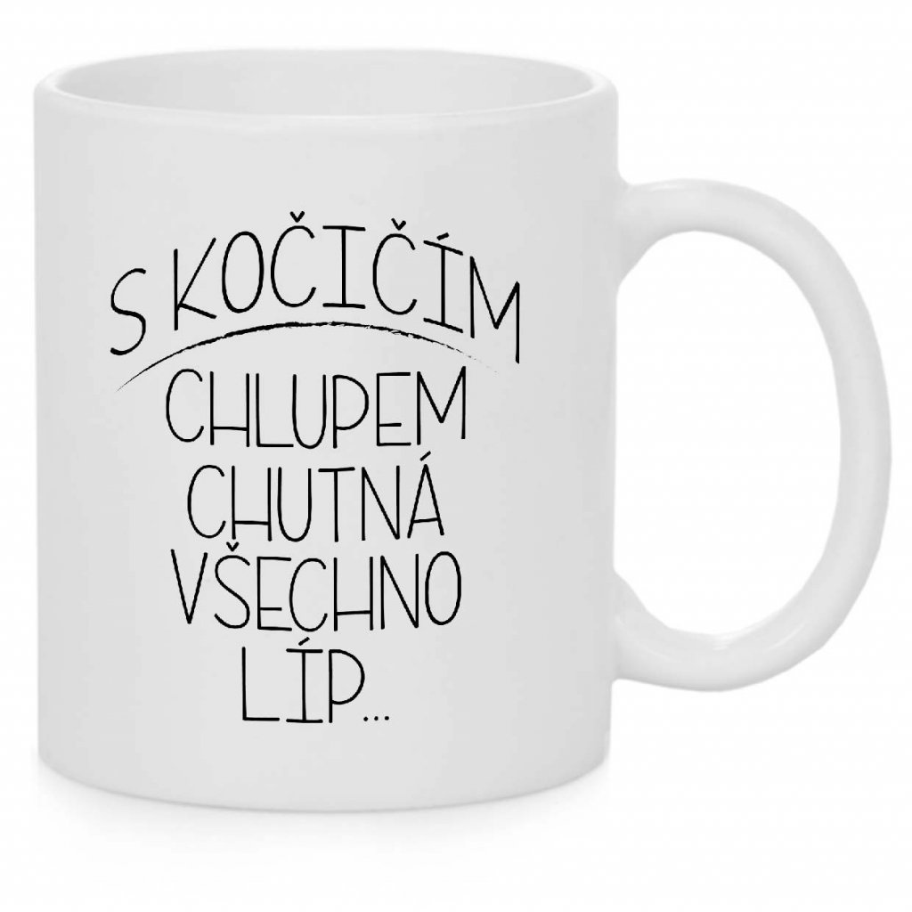 Keramický hrnek s potiskem S kočičím chlupem chutná všechno líp.