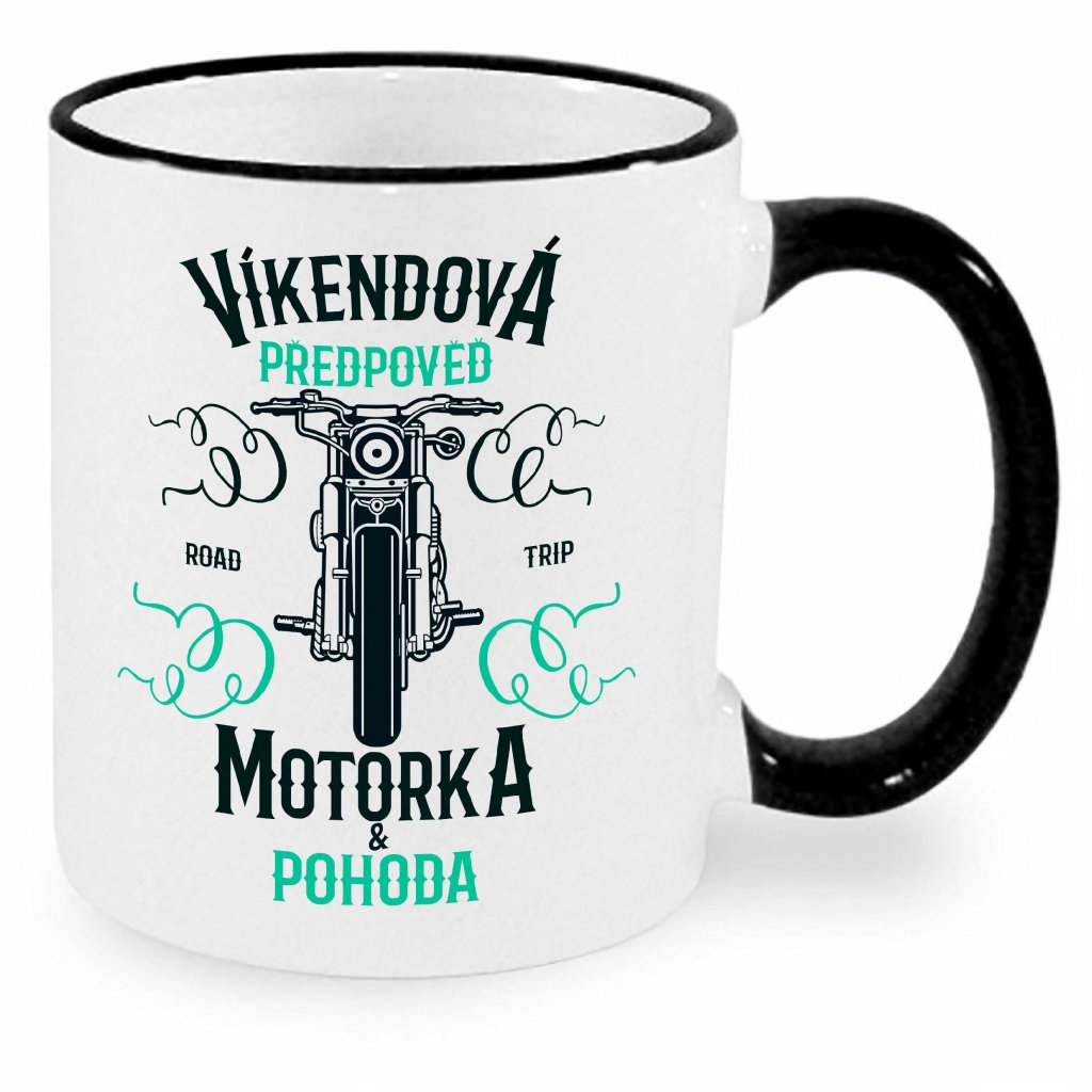 Hrnek pro motorkáře s motivem Víkendová předpověď - motorka.