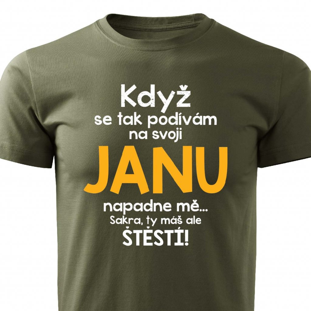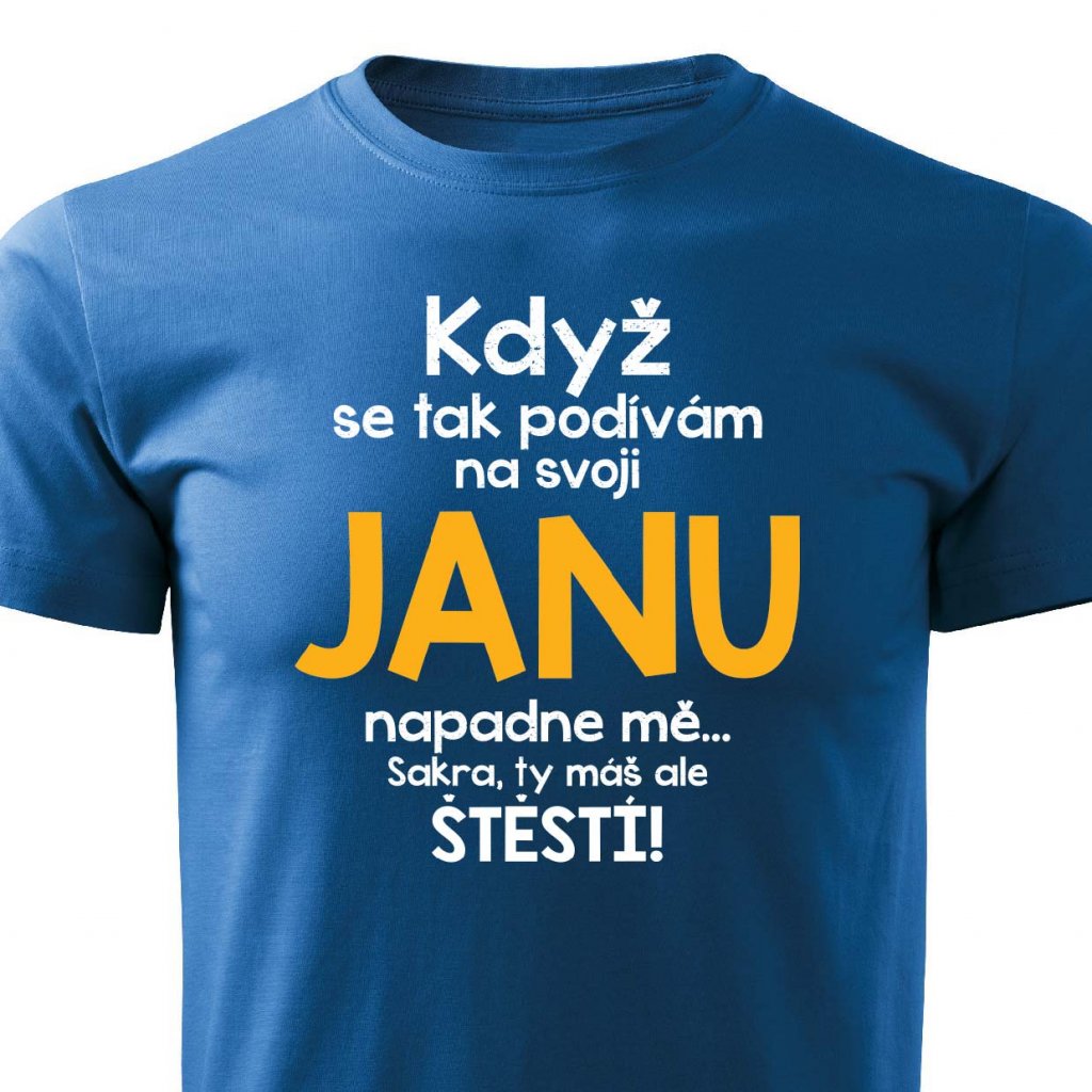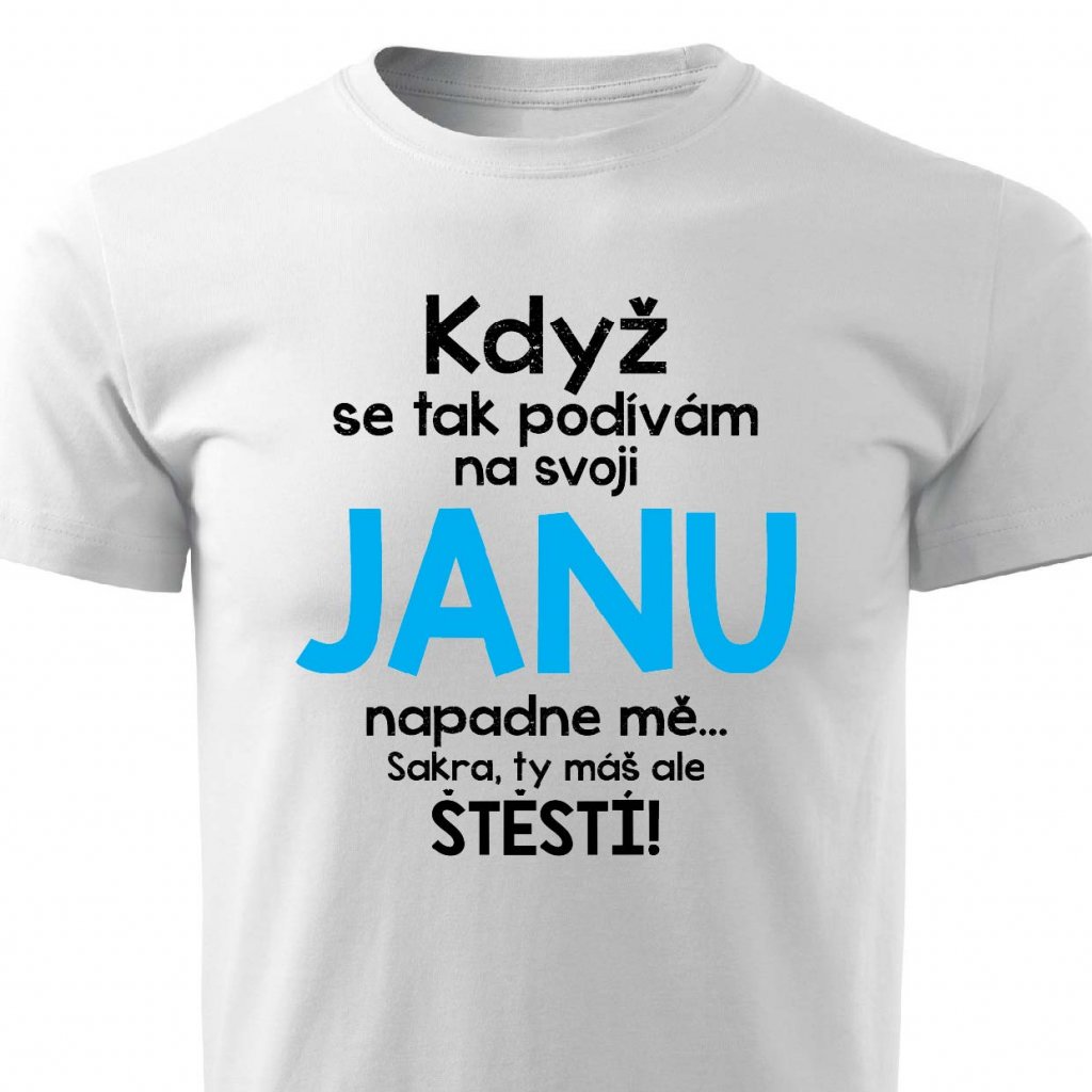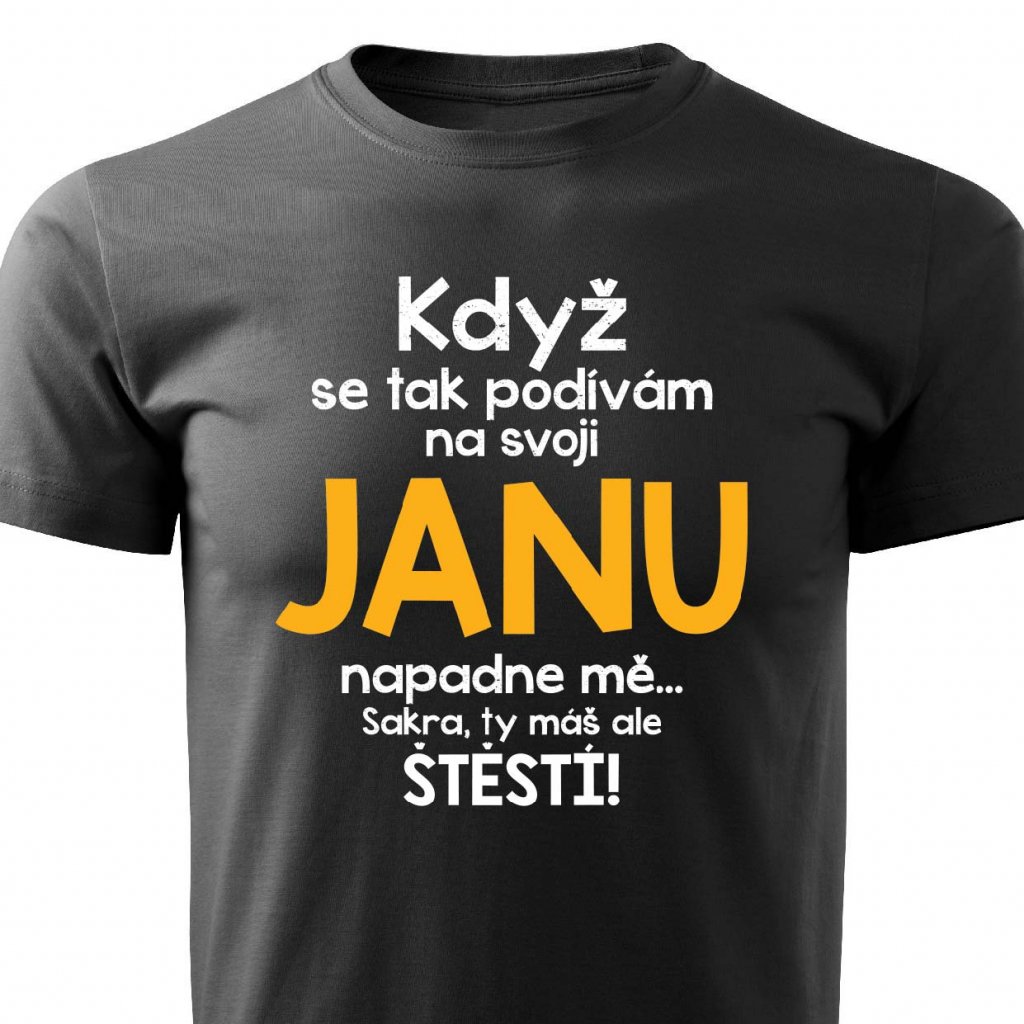 Tričko s potiskem Když se tak podívám na svoji Janu, napadne mě, sakra, ty máš ale štěstí!