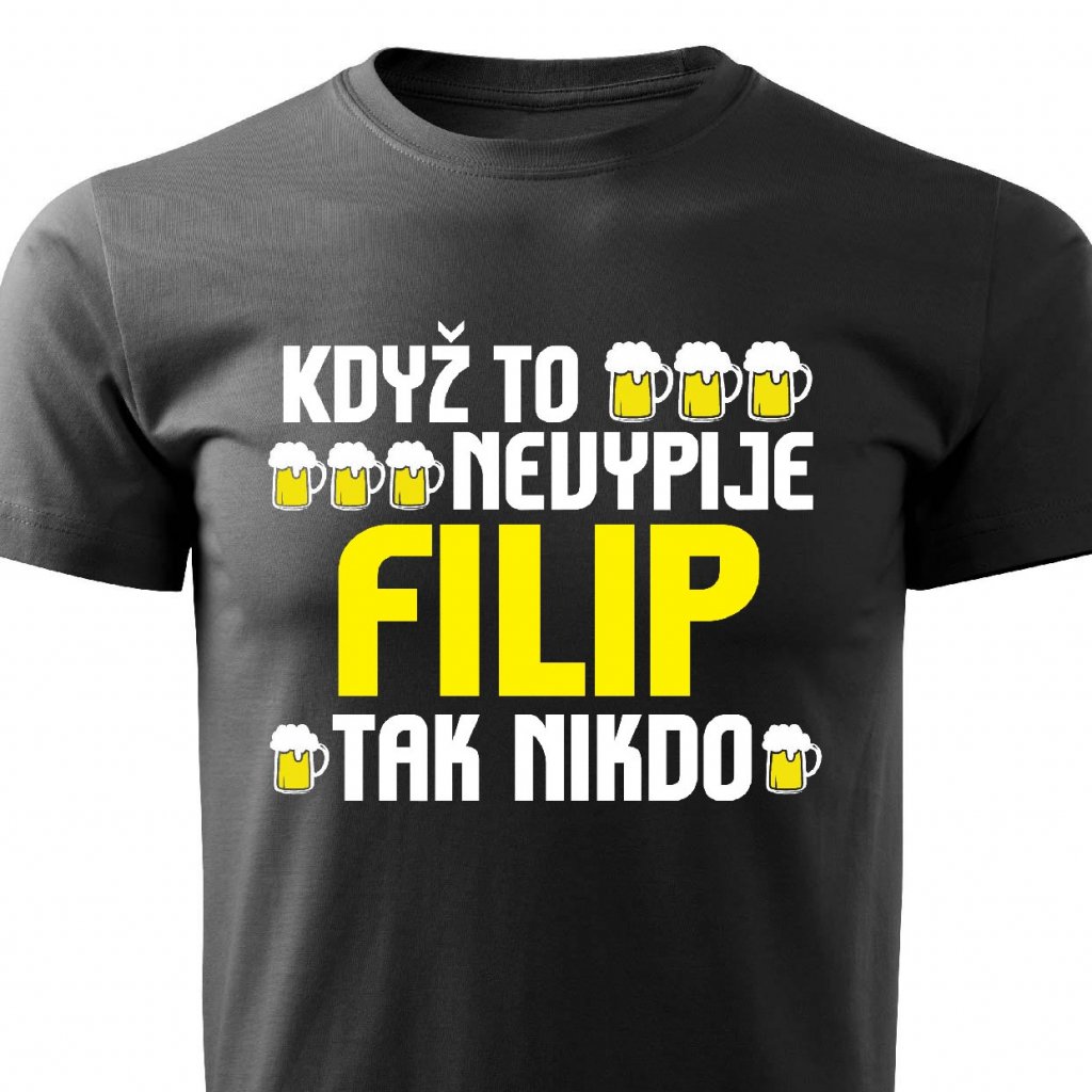 Tričko s potiskem Když to nevypije Filip, tak nikdo.