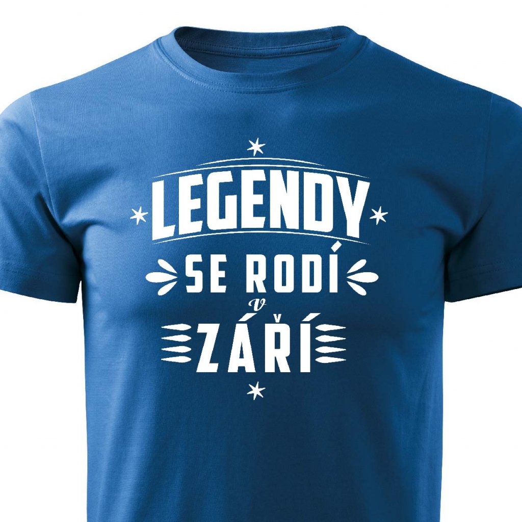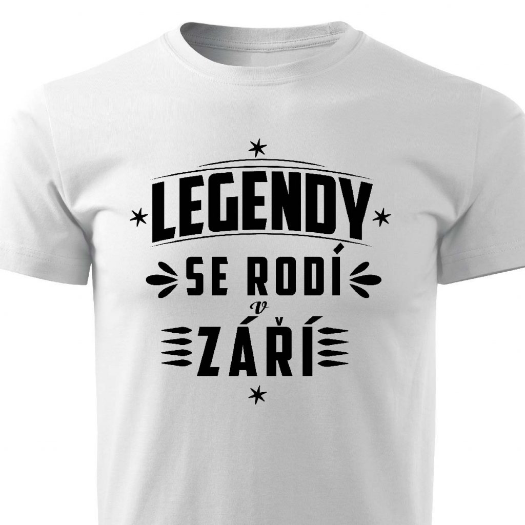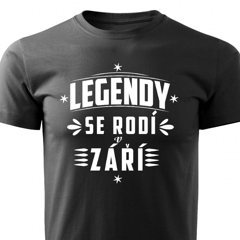 Tričko s potiskem Legendy se rodí v září.