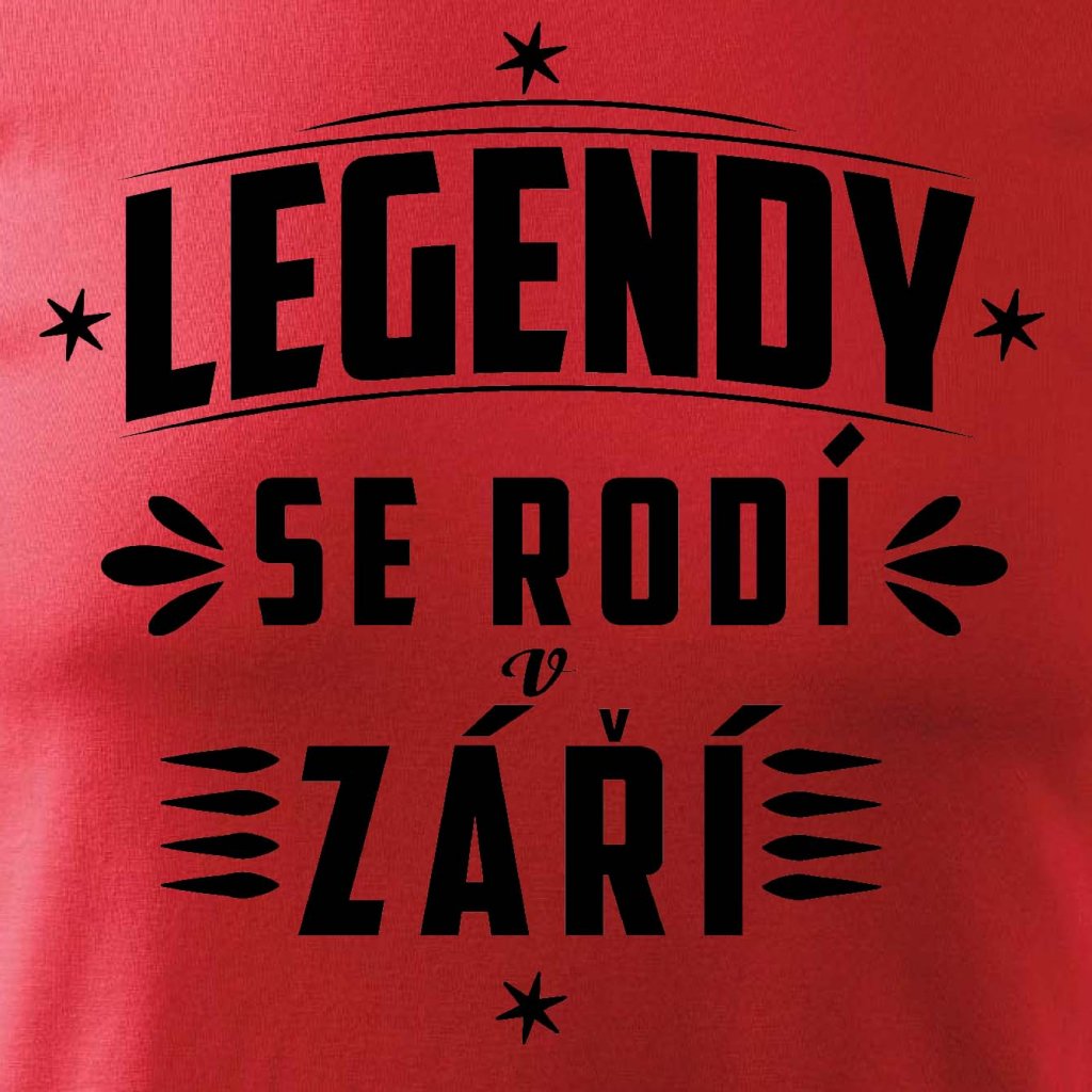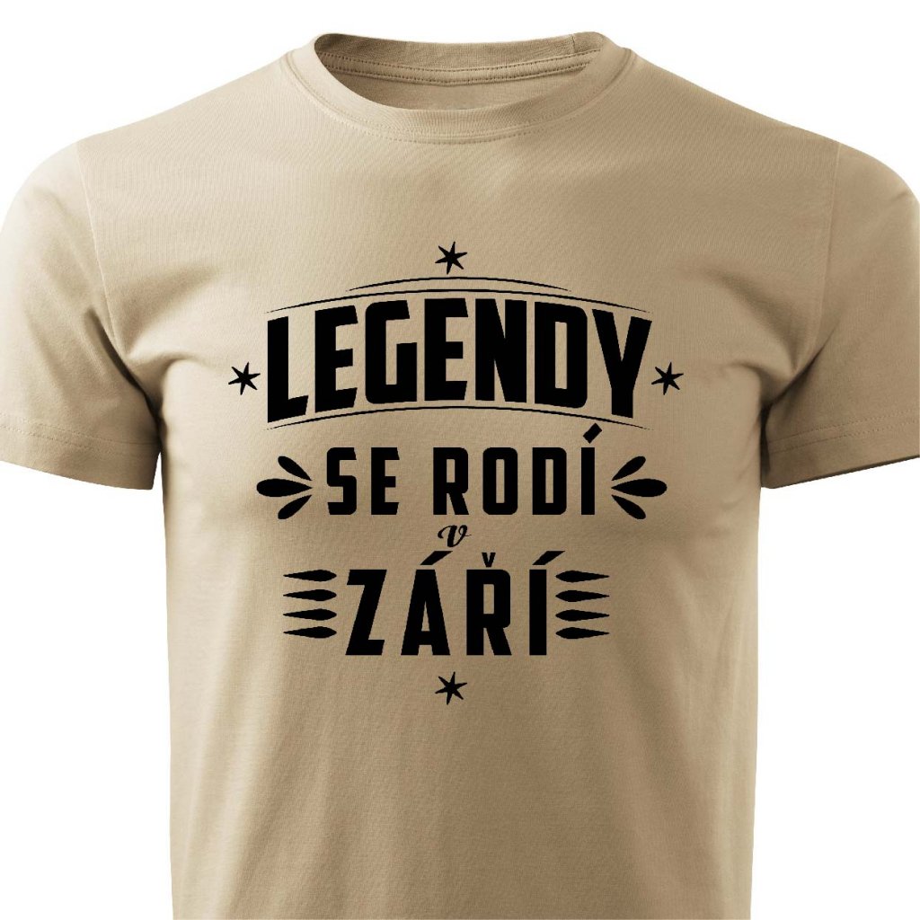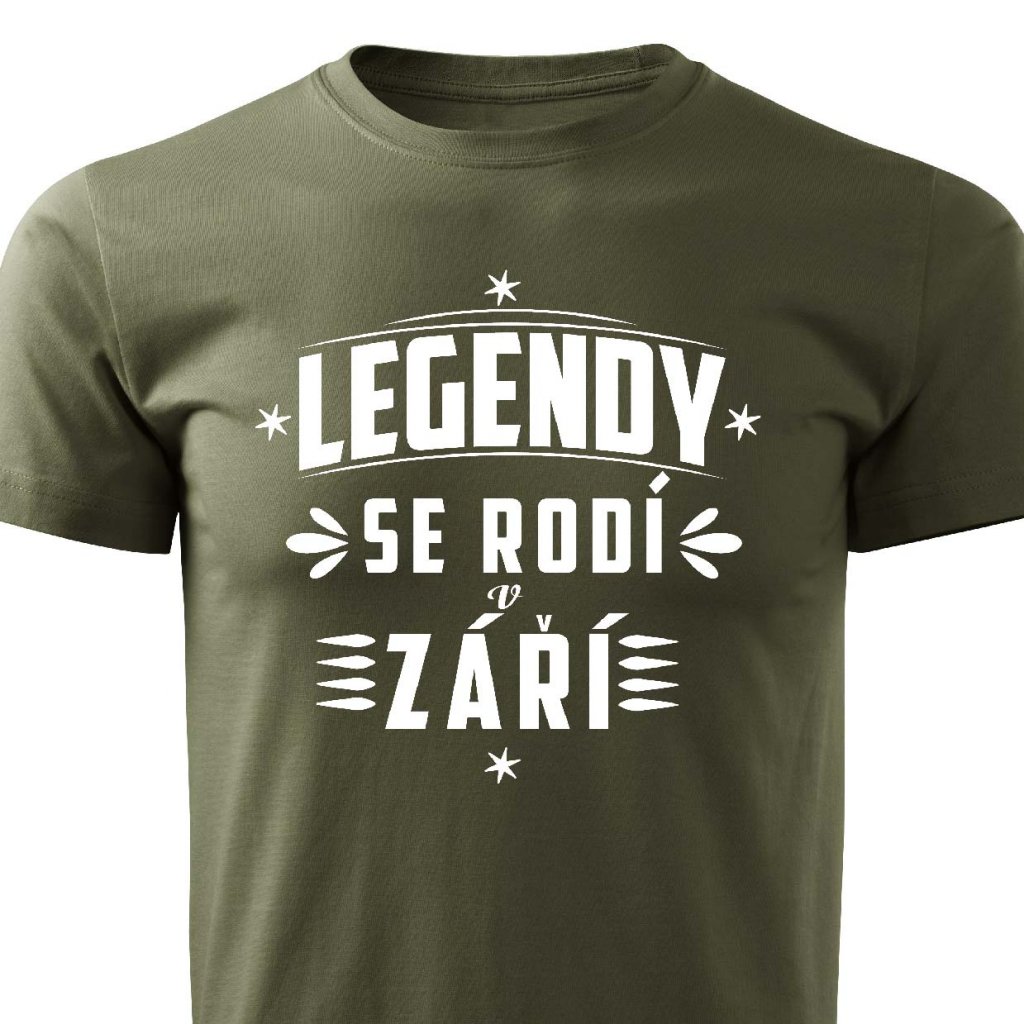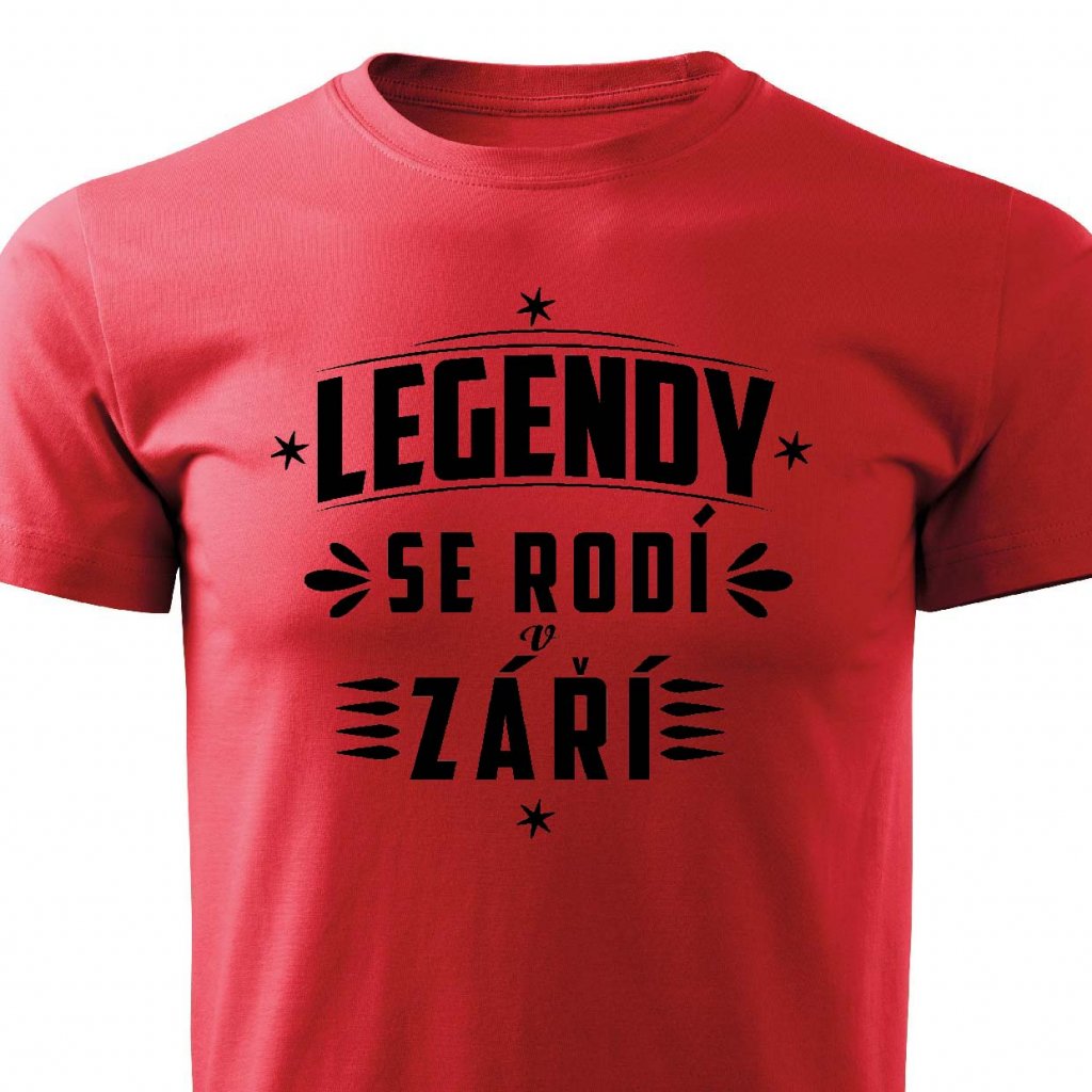 Tričko s potiskem Legendy se rodí v září.