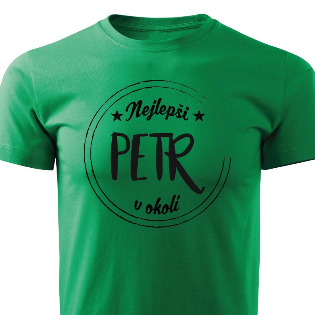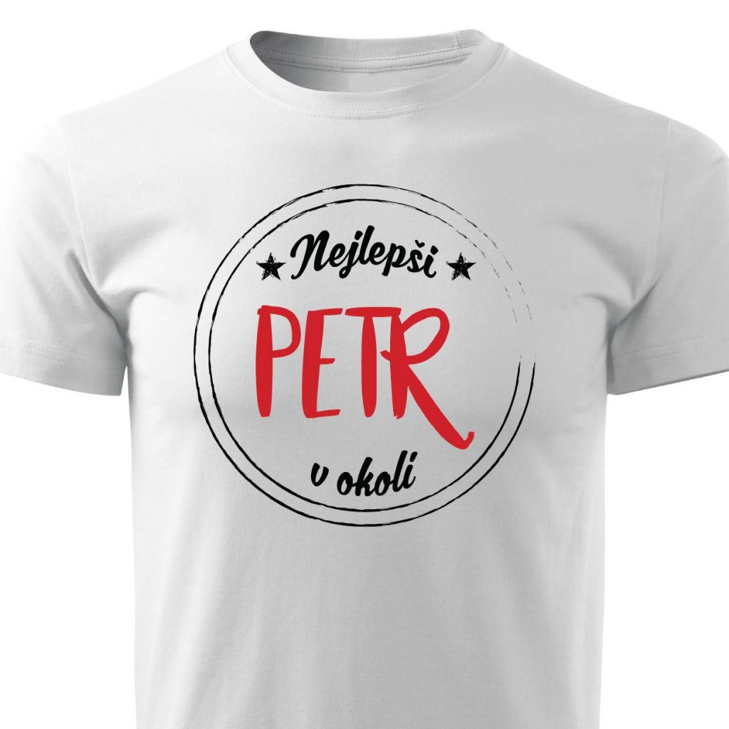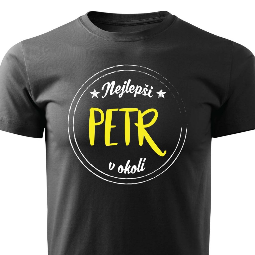 Tričko s potiskem Nejlepší Petr v okolí.
