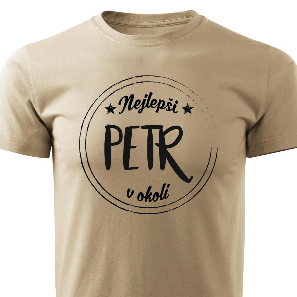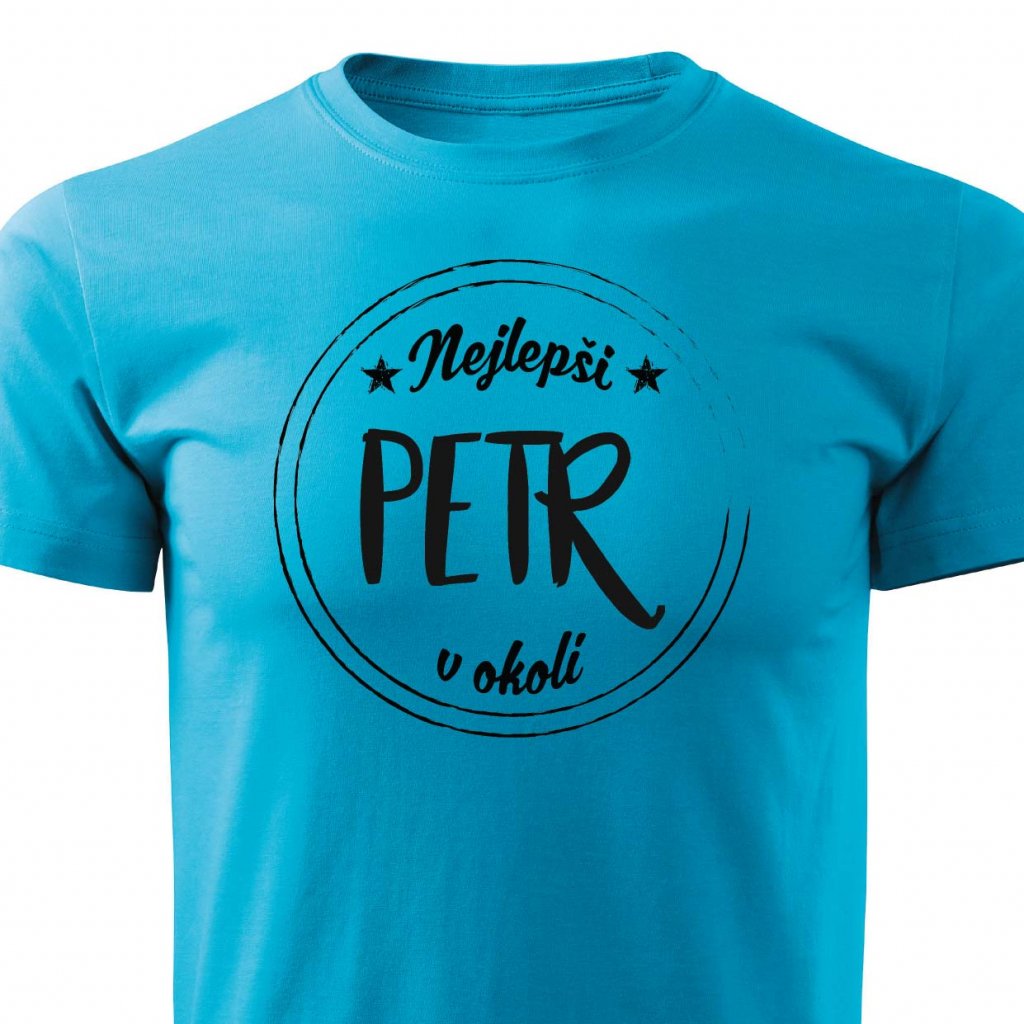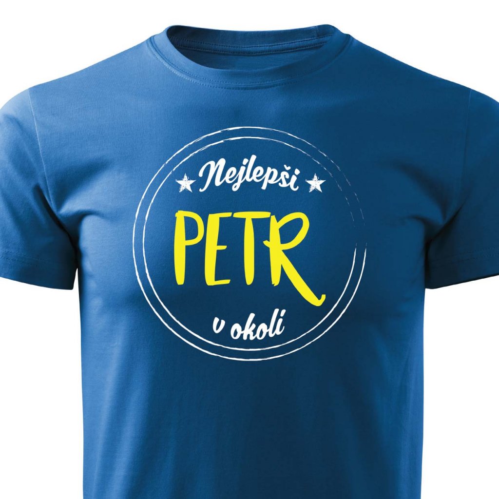 Tričko s potiskem Nejlepší Petr v okolí.