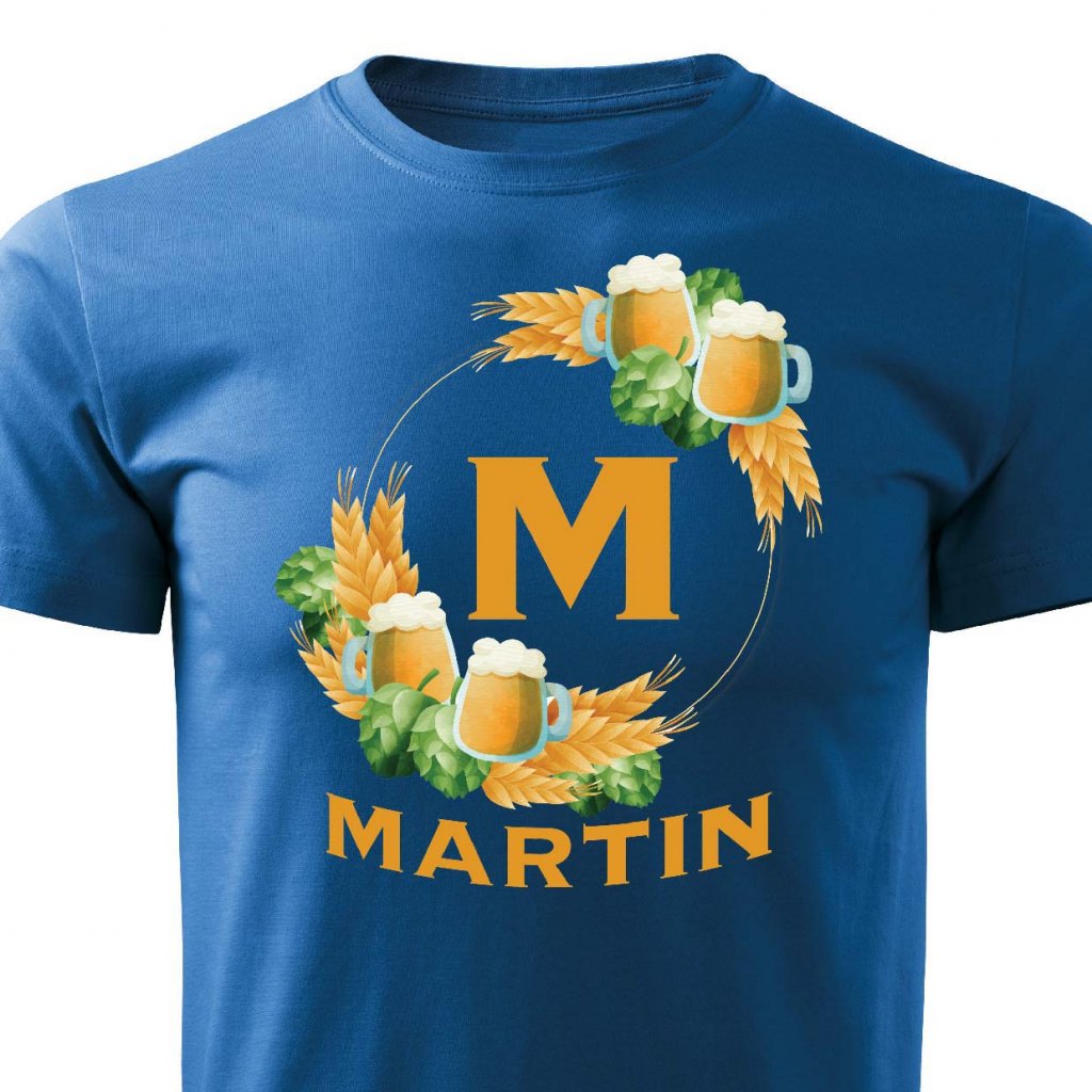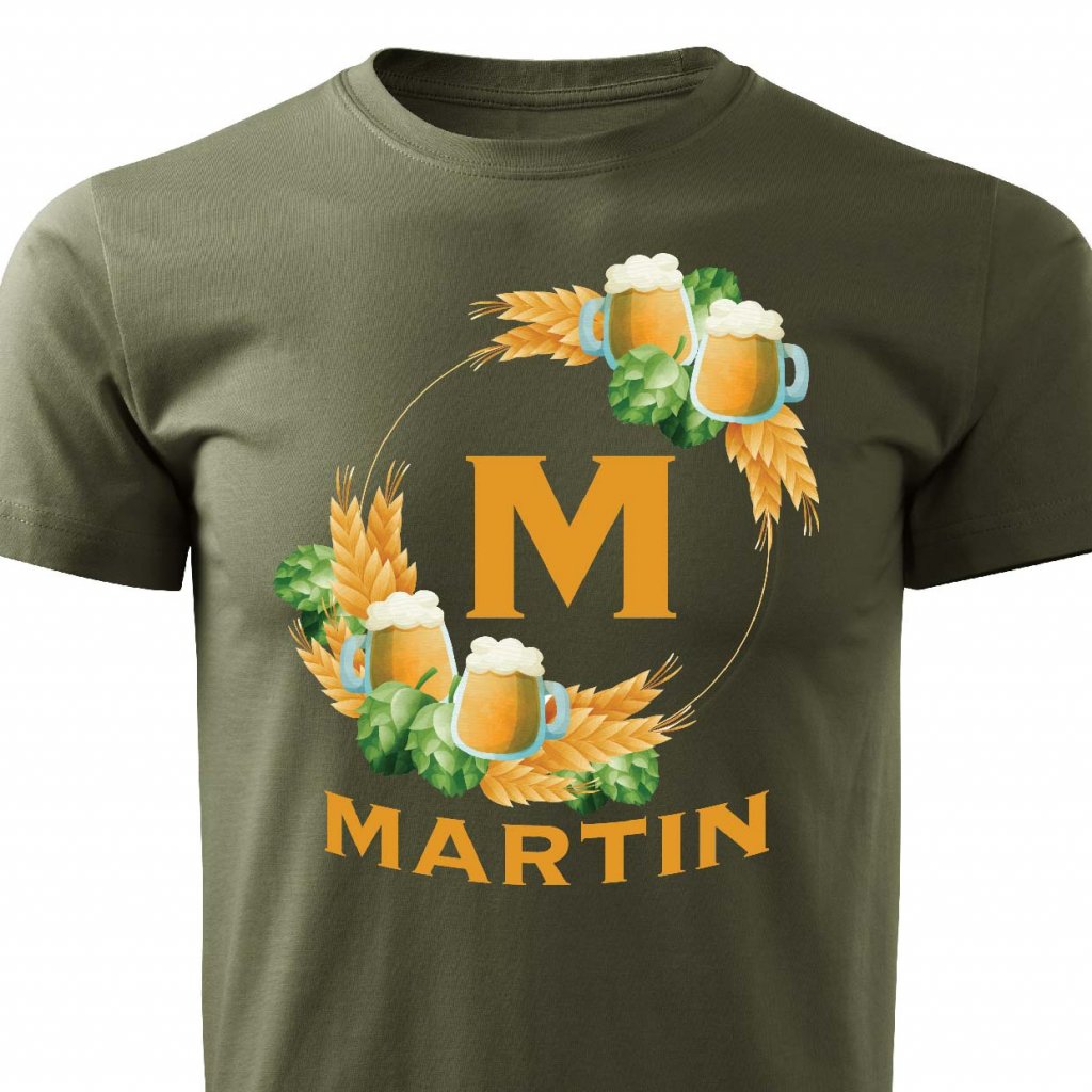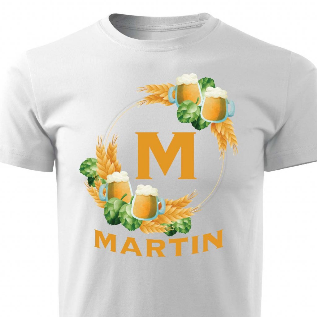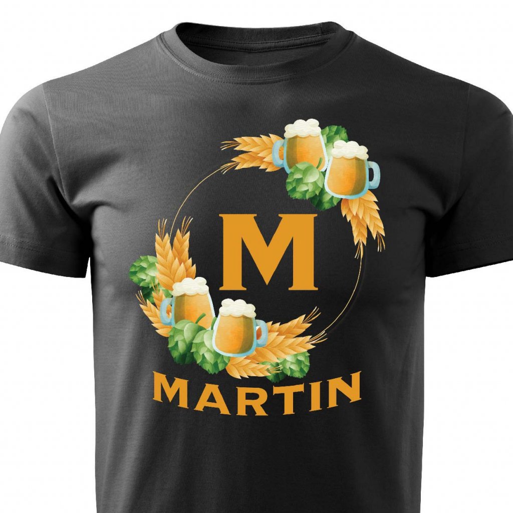Pánské tričko Pivní věnec s monogramem a jménem Martin