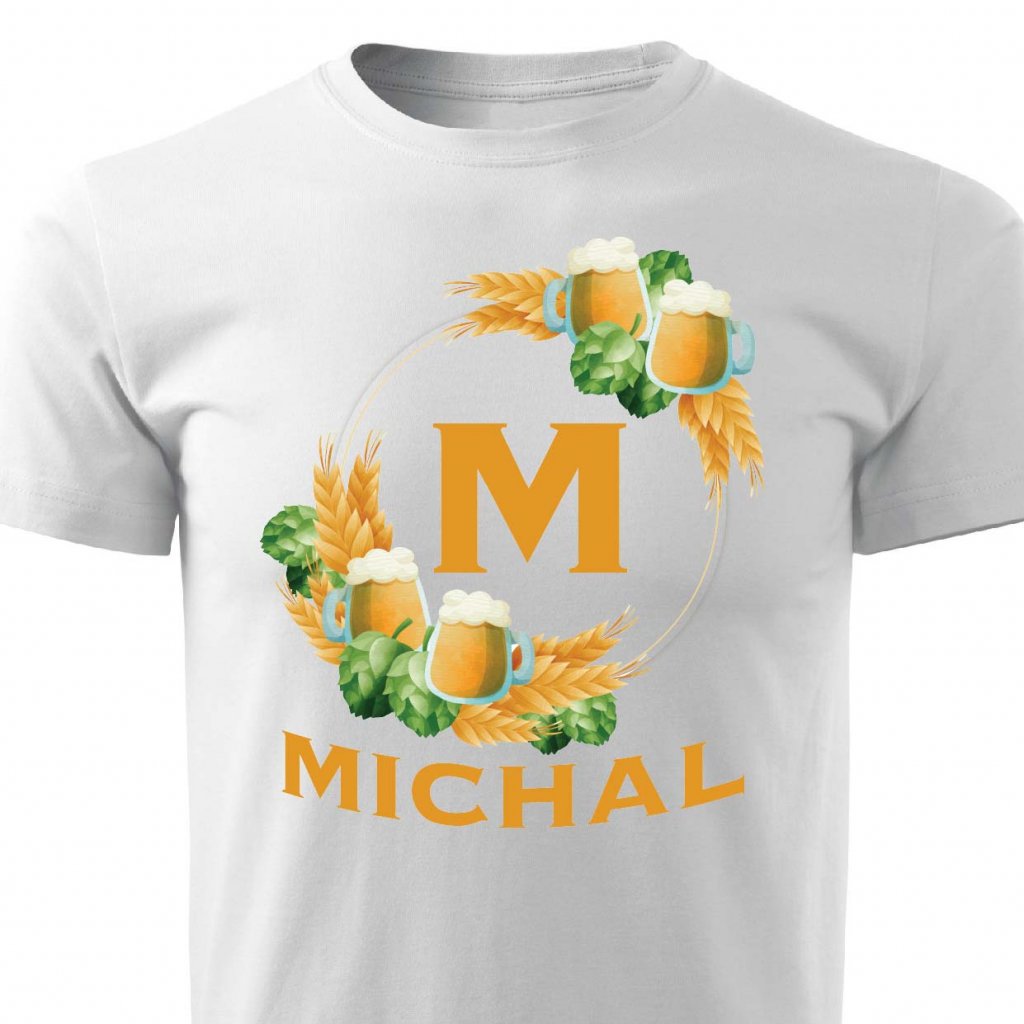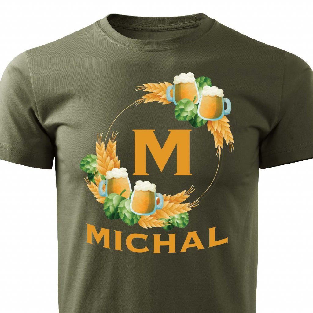 Pánské tričko Pivní věnec s monogramem a jménem Michal