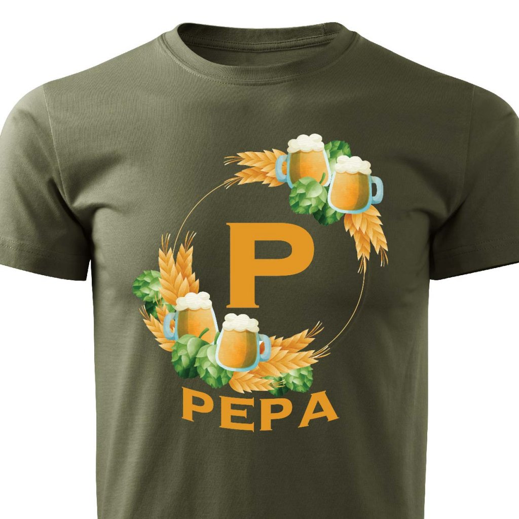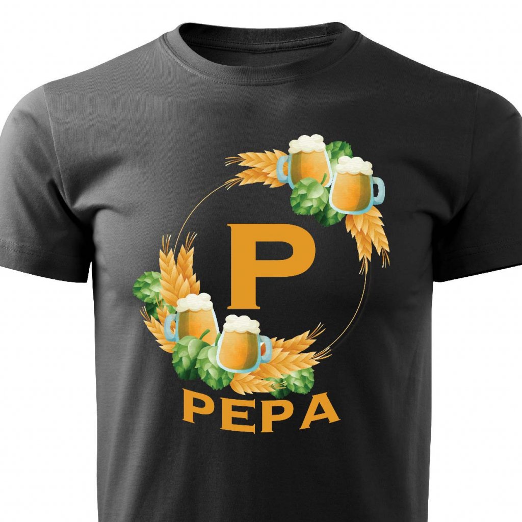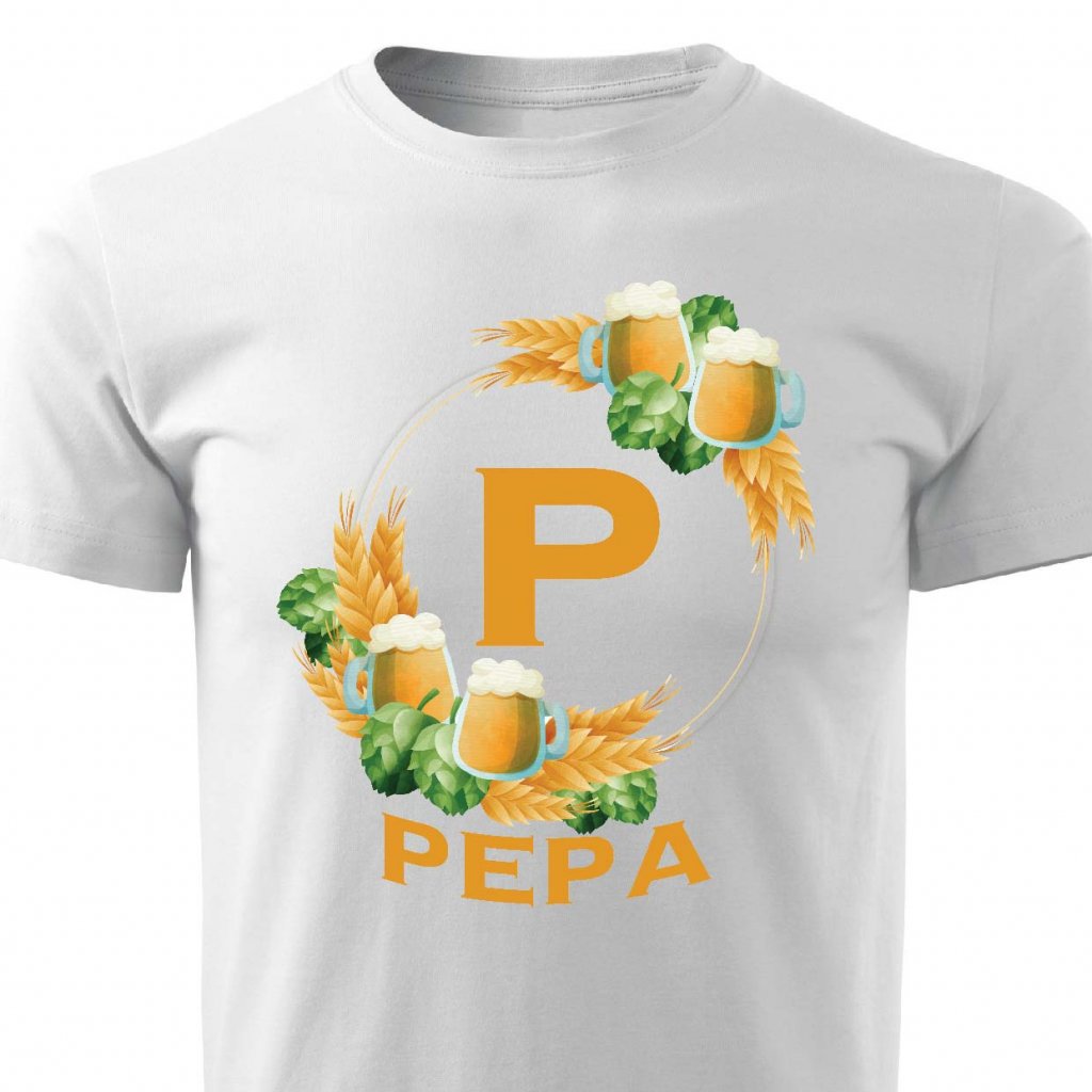 Pánské tričko Pivní věnec s monogramem a jménem Pepa