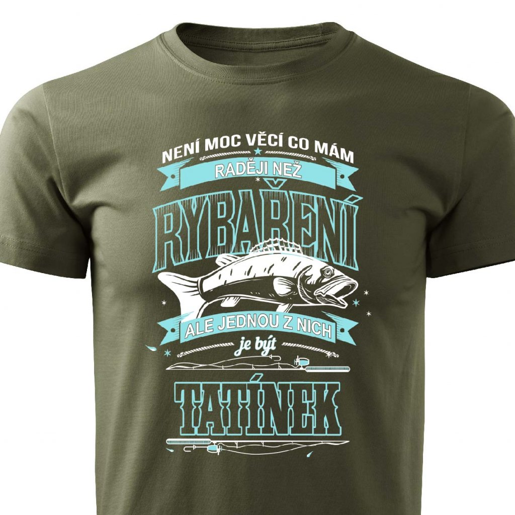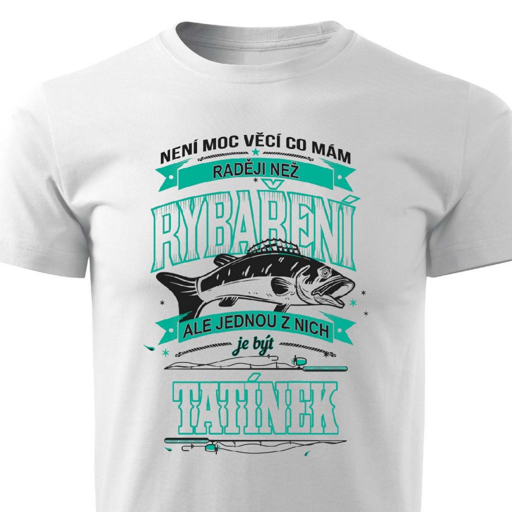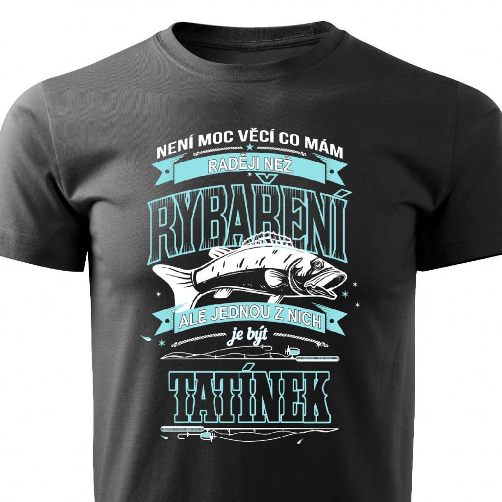 Tričko s potiskem Tatínek rybář. Dárek pro rybáře a tátu v jedné osobě.