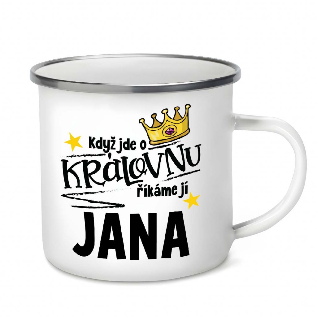Plecháček s motivem Když jde o královnu, říkáme jí Jana