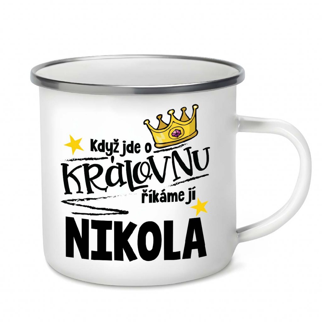 Plecháček s motivem Když jde o královnu, říkáme jí Nikola