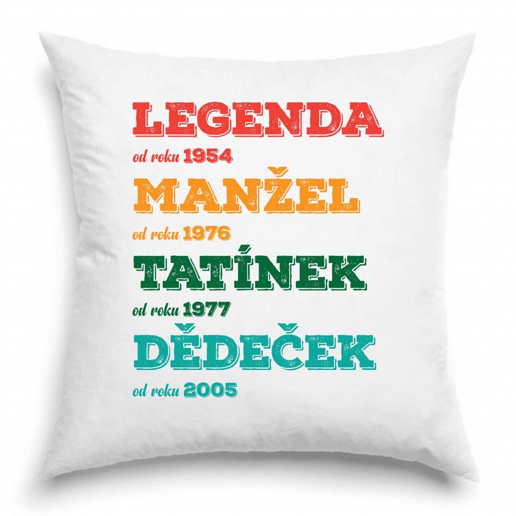 Udělejte mu radost pohodlným polštářem s potiskem Legenda, manžel, tatínek, dědeček