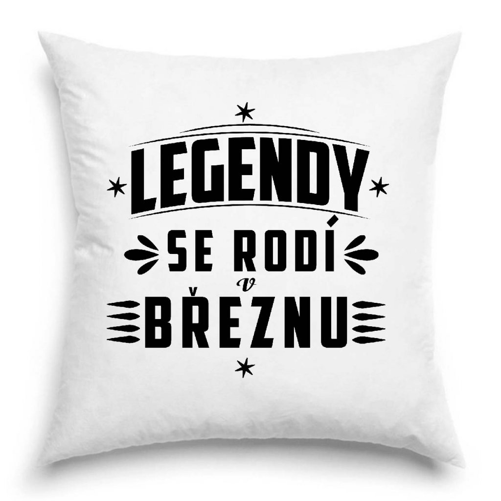 Polštář s potiskem Legendy se rodí v březnu.