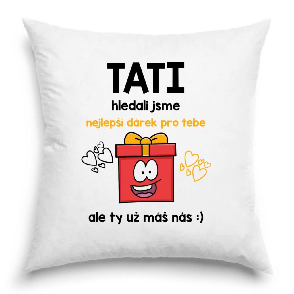 Polštář s potiskem s motivem Tati, hledali jsme nejlepší dárek pro tebe, ale ty už máš náš :)