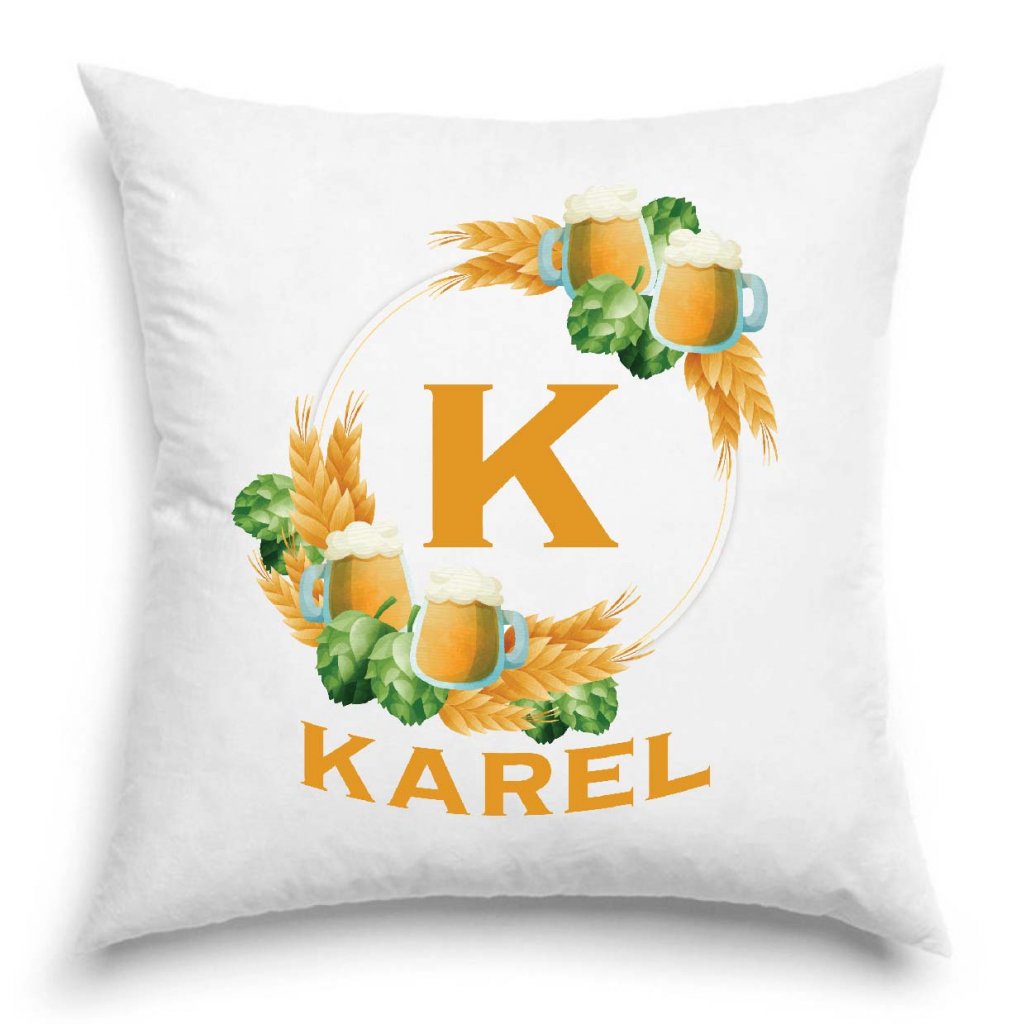 Polštář s potiskem Pivní věnec s monogramem a jménem Karel