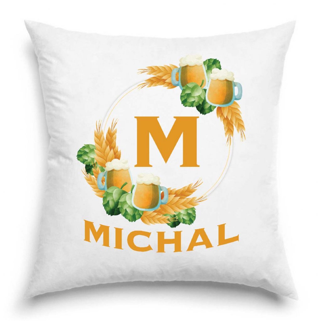 Polštář s potiskem Pivní věnec s monogramem a jménem Michal