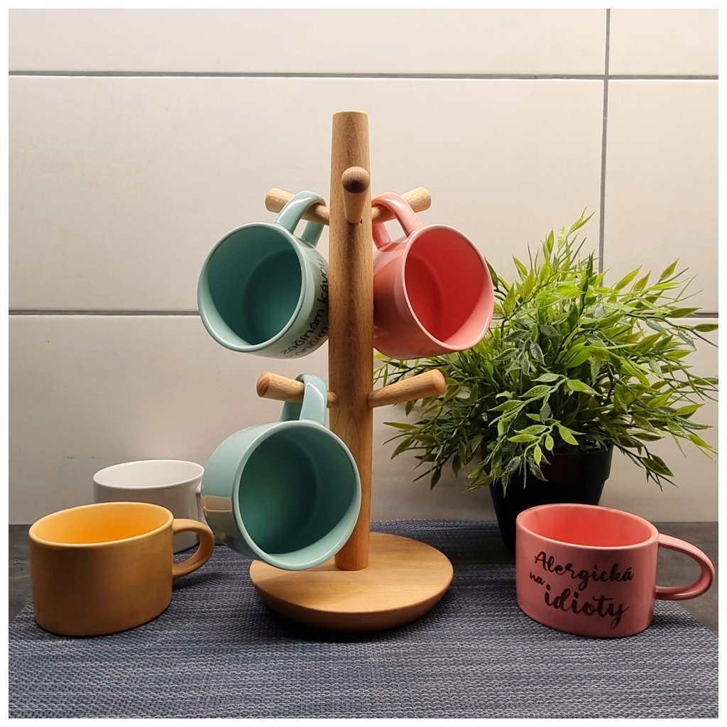 Dřevěný stojánek z pravého bukového dřeva až na 6 hrnečků.