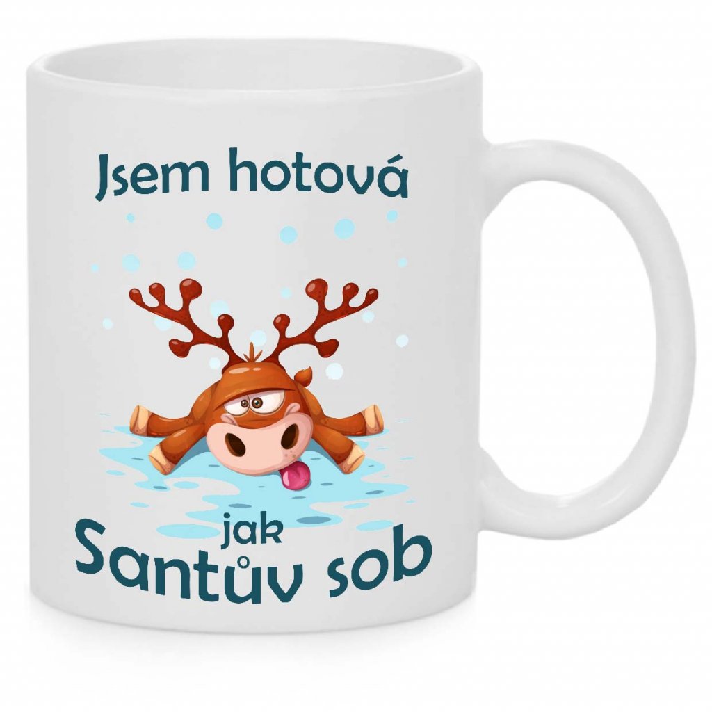 Vánoční hrnek na kávu, čaj nebo svařák s motivem Jsem hotová jak Santův sob