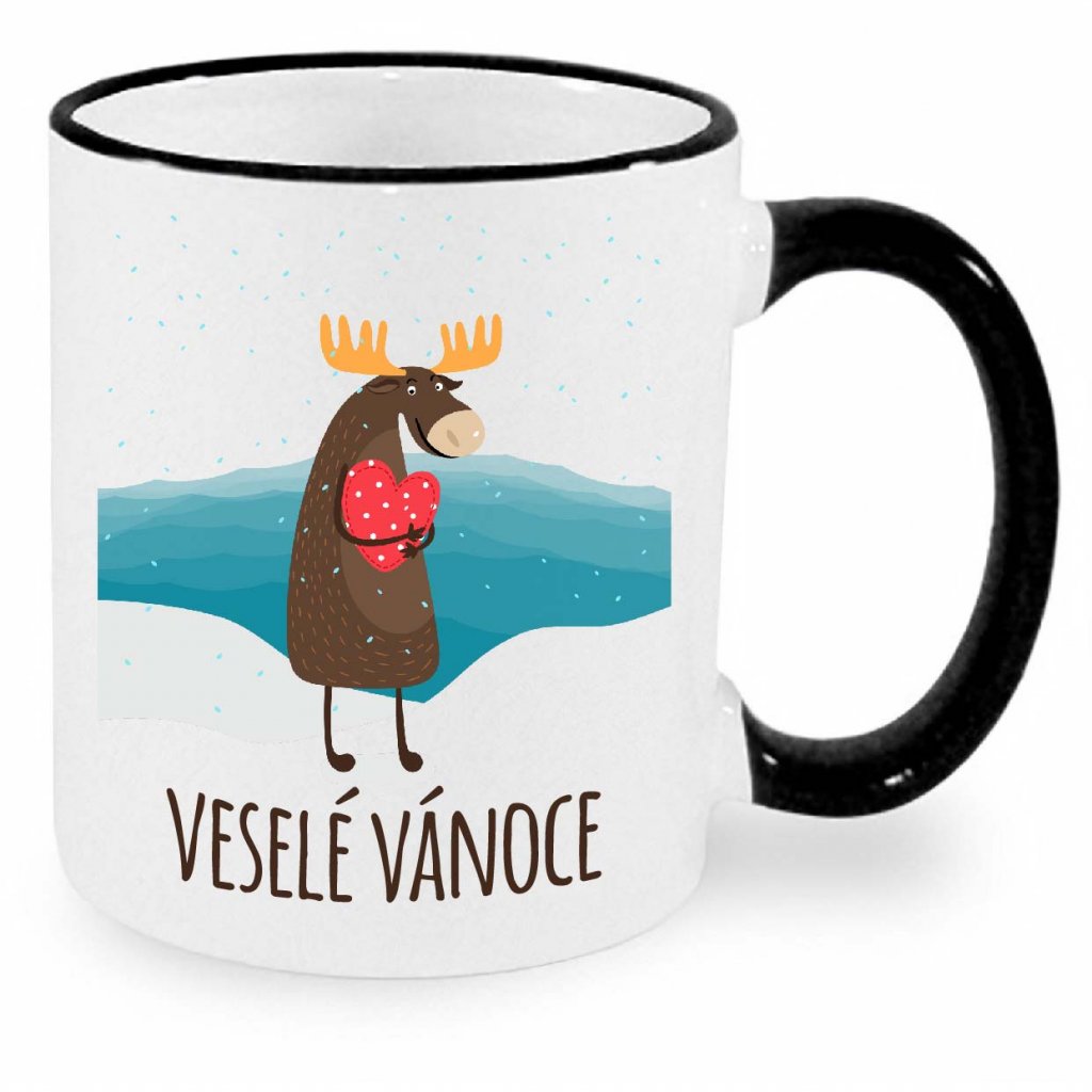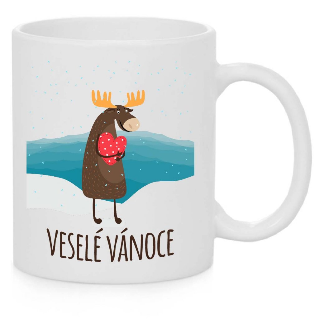 Vánoční hrnek na kávu, čaj nebo svařák s motivem Veselé Vánoce se sobem