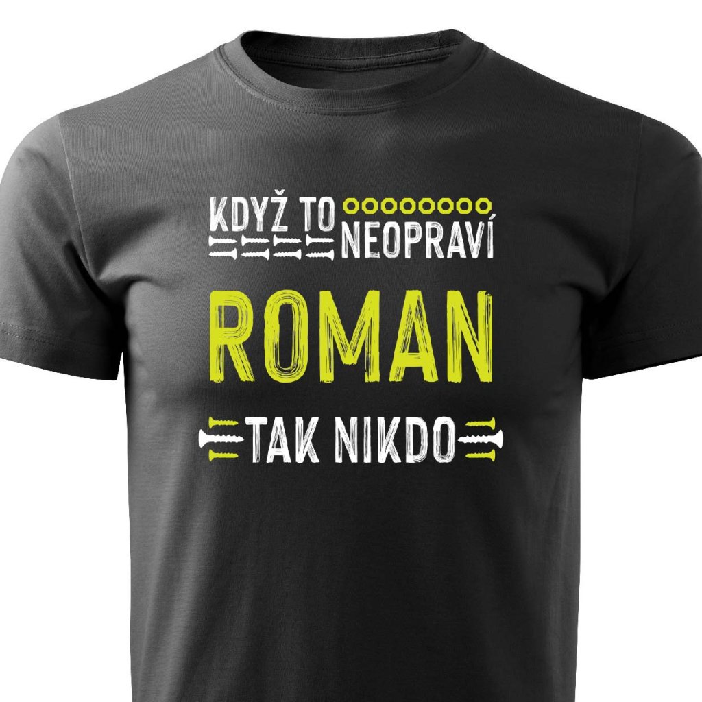 VÝPRODEJ Pánské tričko Když to neopraví Roman, tak nikdo S