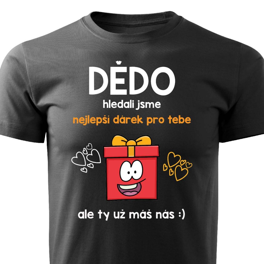 Vtipné tričko s motivem "Dědo, hledali jsme nejlepší dárek pro tebe, ale ty už máš náš :)"